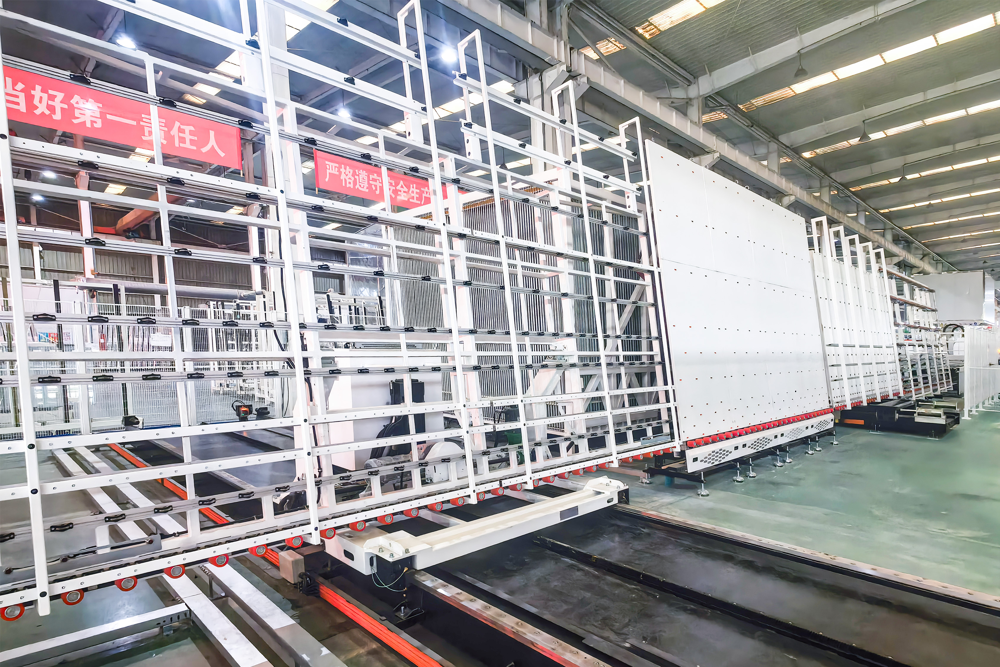 北玻自动化产品从玻璃智能仓储系统,玻璃切割机,立式磨边清洗生产线等单机设备逐步扩展到玻璃深加工预处理连线,玻璃自动分片落架连线以及智能理片系统等自动化连线,再到自主开发的玻璃智能软件系统,彰显了北玻强大的技术研发和创新实力。