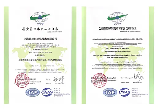 In 2002, it passed the GB/T19001-2000/s09001-2000 quality management system certification. Currently, it has passed the GB/T19001-2016/s09001-2015 quality management system certification. The effective operation of a quality management system that meets international standards is the foundation and guarantee for NorthGlass Equipment to have a good reputation in the market.